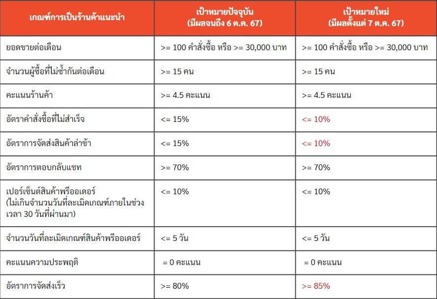 เกณฑ์และเงื่อนไขการเป็นร้านค้าแนะนำ