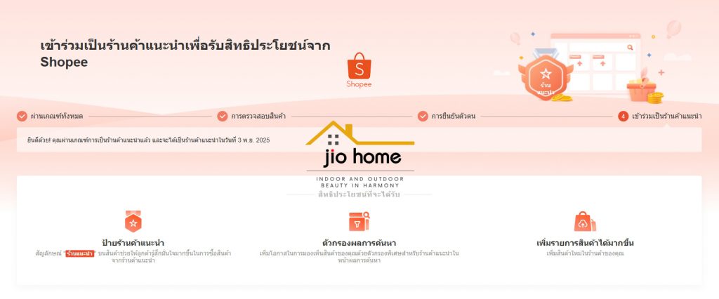 ไจโอโฮมได้รับเกียรติจาก Shopee ให้เป็นร้านค้าแนะนำ